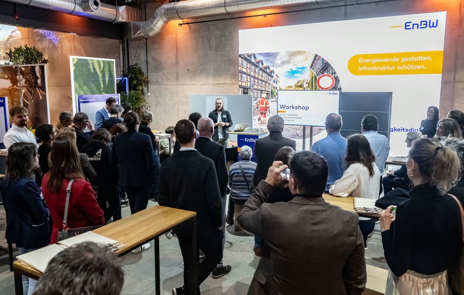 Im Rahmen des Nachhaltigkeitsdialogs 2025 hat die EnBW rund 100 Teilnehmende aus Bürgerschaft, Verwaltung und Fachpraxis in einen gemeinsamen Denkraum eingeladen. Ziel war es, konkrete Impulse für Maßnahmen zum Klimawandel zu erarbeiten – offen, kreativ und strukturiert zugleich. In drei parallelen Workshops wurde mit Methoden wie 25/10 Crowd Sourcing und dem Futures Wheel gearbeitet. Die Gespräche waren lebendig, die Ergebnisse am Ende greifbar. Beteiligung wurde hier nicht simuliert, sondern tatsächlich ermöglicht und dokumentiert.